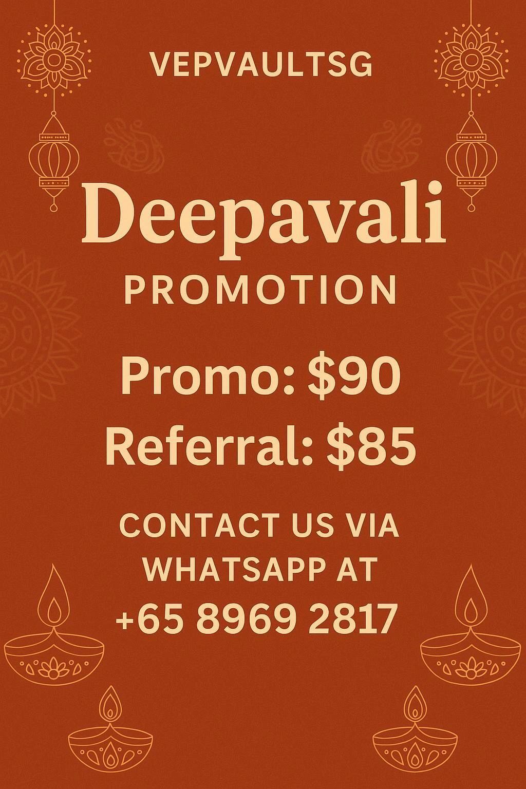 Here are our current Deepavali promotions! The base fee is $90, and the referral price is $85.